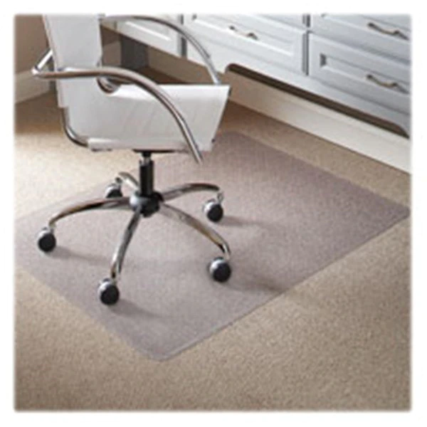 Crystal-clear mat with a straight edge is designed to preserve and protect your low-pile carpet up to 1/4" thick (including padding). Exclusive. AnchorBar chairmat cleat system provides easy handling. long-lasting durability and a clean. modern look. Chairmat cleats hold mat firmly in place yet are gentle on carpet and fingers. Engineered for optimum clarity. high performance and a smooth effortless roll. thick vinyl mat is designed for heavy use to protect against wear and tear from chair casters. Mat offers a thickness of 98 mil.