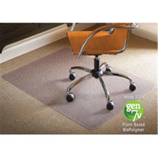 Made from renewable plant sources. this clear chairmat offers an easy-rolling surface at any desk or workstation. eliminates wear on your flooring surface and will not crack. Use to protect loop/berber style carpet up to 3/8" thick including padding. Rectangular clear design lets you to see the beauty of the carpet surface under the chairmat. Exclusive AnchorBar cleats hold chairmat firmly in place yet are gentle on carpet and fingers. Natural Origins Chairmat also features a classic straight-edge along with its eco-friendly construction. Renewable plant-based materials help reduce adverse environmental and health impacts. USDA Certified Bio-based chairmat is phthalate-free and cadmium-free.