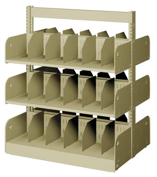 Divider Library Shelving, Double Face Starter, Steel, Color Putty, Finish Powder Coat, Height 42", Width 36", Depth 20", Number of Shelves 6, Shelf Capacity 150 lbs., Shelf Depth 10" Nominal, For Use With Books, Binders, Includes Shelving, (5) Adjustable Dividers per Shelf,Hardware