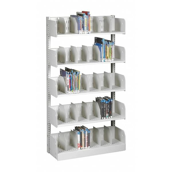 Divider Library Shelving, Single Face Starter, Steel, Color Putty, Finish Powder Coat, Height 66", Width 36", Depth 10", Number of Shelves 5, Shelf Capacity 150 lbs., Shelf Depth 10" Nominal, For Use With Books, Binders, Includes Shelving, (5) Adjustable Dividers per Shelf,Hardware