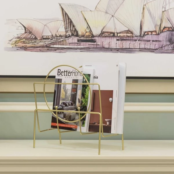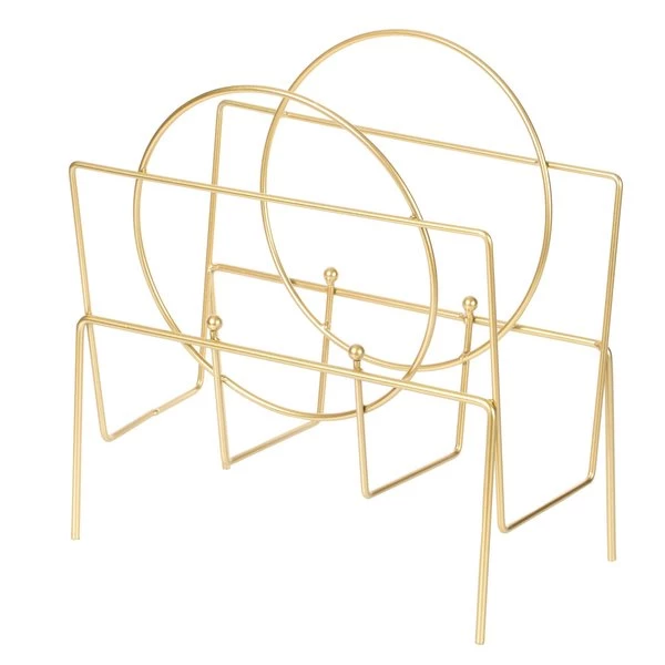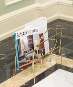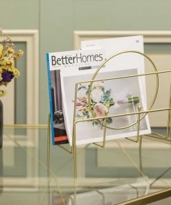 Storage and organize your newspaper with this magazine storage rack. This stand will keep your files, documents, folders, books, newspapers, or mail in a neat and decorative way. It is made of faux leather pocket with a gold metal frame that makes a stylish and useful addition to any workspace. Suitable for organizing your desk, table, or counter in an office or kitchen. Featuring a handle that allows convenient carrying. Decorate your home and office while adding a modern and contemporary charm!