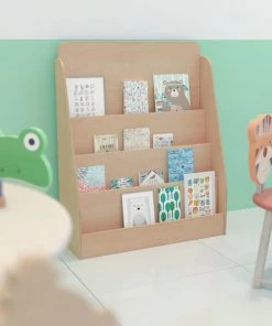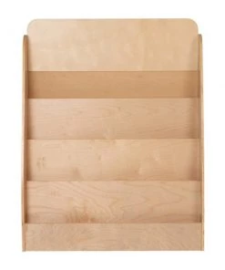 Reading is vital for the development of young minds so keep books, magazines, and coloring pages readily accessible with this 4 shelf display stand. Recommended for ages 5-7, this wooden bookshelf blends in any design scheme. Ideal for commercial use in daycares, waiting areas, classrooms, and libraries, this display unit will be just as handy in kids playrooms and bedrooms. Safety and strength are top priorities for any furniture that will be around children and this 4-tiered bookshelf doesn't disappoint. The poplar and birch plywood gives superior durability and is able to stand up to the rigors of institutional use. The clear lacquer finish gives a glossy appearance that looks great in any space. Rounded kid friendly edges prevent accidental abrasions to little arms and legs while self-leveling floor glides ensure a stable platform. The included anti-tip safety strap helps prevent tipping. Assembly of this book display shelf takes under 30 minutes with the included illustrated instructions. Keep this kids bookshelf looking great with an alcohol disinfectant containing 70% or higher alcohol concentration followed by a dry cloth. Pair this display shelf with our natural wooden 4 shelf book display to add storage for toys or showcasing your child's book collections.