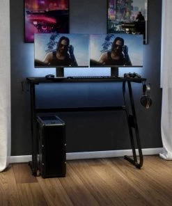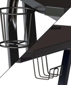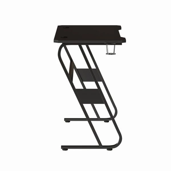 Add personality to your gaming setup with this ergonomic gaming desk with sleek black frame. For excitable players, this game station has a cup holder to prevent accidental spills. For those that game at home or are professional game testers in an office, gaming desks and chairs are essential for daily gamers. The multi-function workstation powers you through game sessions and work demands on a sturdy z-shape frame. Reduce clutter on the worksurface by feeding cords through the two provided grommets. Always know where your headset is by placing on the headset hook in between games. Upgrade the gamer or salesman in your home or office with this computer gaming desk. Complete your gaming setup with our Gaming Chair Racing Office Ergonomic Computer PC Chairs.