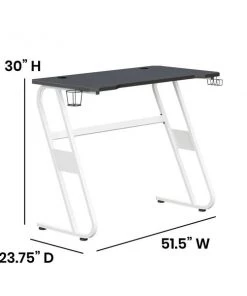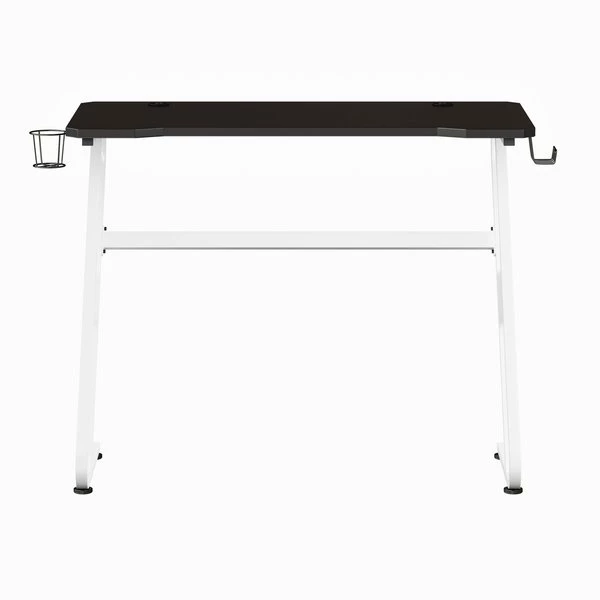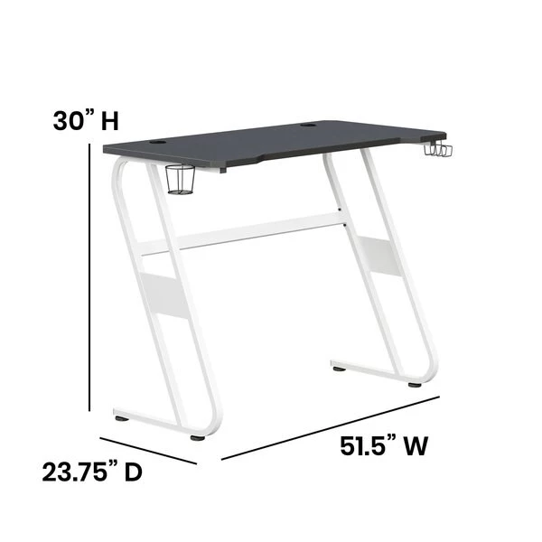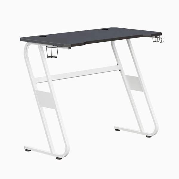 Add personality to your gaming setup with this ergonomic gaming desk with sleek white frame. For excitable players, this game station has a cup holder to prevent accidental spills. For those that game at home or are professional game testers in an office, gaming desks and chairs are essential for daily gamers. The multi-function workstation powers you through game sessions and work demands on a sturdy z-shape frame. Reduce clutter on the worksurface by feeding cords through the two provided grommets. Always know where your headset is by placing on the headset hook in between games. Upgrade the gamer or salesman in your home or office with this computer gaming desk. Complete your gaming setup with our Gaming Chair Racing Office Ergonomic Computer PC Chairs.