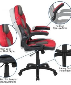 Let the games begin on this gaming desk and chair set. The black top gamers table has 2 grommets for cable management, a detachable cup holder and headset holder to keep you in game mode. The racing game chair have flip-up arms to comfortably rest your arms on while handling the controller or flip-up to slide under the desk. Be true to the gaming experience with a desk and chair combo designed for gaming systems. This PC gaming desk has a spacious, lightweight carbon fiber top that lends superior strength and prevents rust and corrosion while the low thermal expansion properties preserve fiber integrity to extend the lifetime of the desktop. Use the cup holder to prevent beverages from spilling on your pc gaming keyboard. The comfortably padded ergonomic gaming chair has a full swivel cylinder and adjusts with the pneumatic lever. Tilt back with ease by pulling the lever outward, control the force needed to recline by turning the knob underneath the seat. Made for gamers, this gaming desk and chair bundle will get you on your way to leveling up.