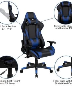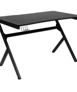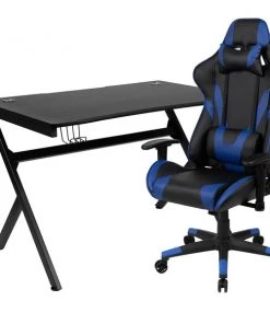 Set yourself up to put on a performance at your new gaming computer desk set with racing gaming chair. This gaming desk and chair set will put you ahead of the game world with its ultra-comfortable headrest and lumbar pillows that can be adjusted or removed. With a reclining office chair that reclines 87° ~ 145° with a pull of a lever you're positioned to take down any opponent. If you're on the market to upgrade your old desk and chair set or you've gotten into gaming more and need gaming furniture then this gamers bundle offers the perfect combination at an unbeatable price. This PC gaming desk has a spacious, lightweight carbon fiber top that lends superior strength and prevents rust and corrosion while the low thermal expansion properties preserve fiber integrity to extend the lifetime of the desktop. The black gamers table has ample space for components and 2 grommets for cable management. Always know where your headset is with the included headrest hook while you keep your desktop and pc gaming keyboard clear of accidental spills by placing hot and cold beverages in the cup holder. Your online followers will know that you're serious when they see you in your reclining gaming chair with adjustable pillows.