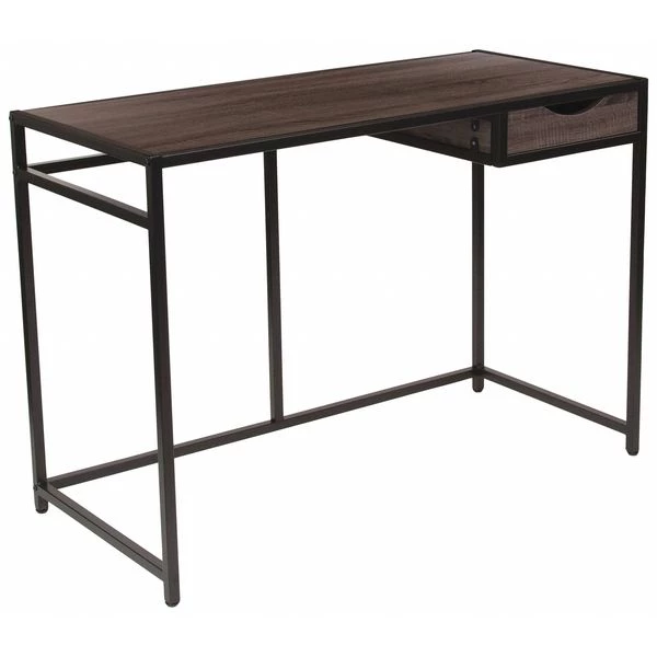 This sleek computer desk offers you the functionality you need to get organized and be productive with the chic style to look great doing it. The dark driftwood finish top is enclosed by the metal frame adding a nice contrast that catches the eye while the pull-out drawer has a cutout to easily slide the drawer open and close. Investing in a desk for your home makes working from home or managing household bills and paperwork a nicer experience. The appealing design of this desk will complement any work space.