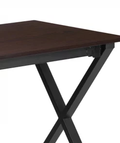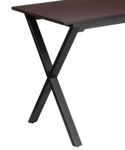 Office Desk, Overall Width 47 1/2 in, Overall Height 29 in, Overall Depth 23 3/4 in, Number of Pedestals 0, Pedestal Location None, Number of Drawers 0, Pedestal Style None, Keyboard Shelf No, Color Base Black, Color Top Walnut, Base Material Metal, Top Material Laminate, No Handle, Assembly Required, Standards ANSI/BIFMA
