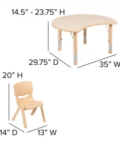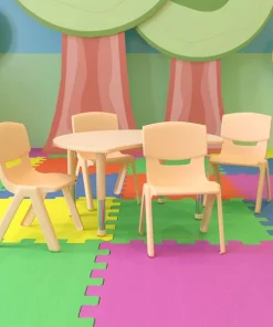 Setup a collaborative table set for kids to interact by using crescent shaped activity tables. Designed for safety around rambunctious toddlers, the table has rounded corners and the plastic stack chairs are constructed of metal-free materials. This activity table set serves as a play and learning table for the classroom or home. Built for comfort, the shell chairs are a one-piece contoured designed to promote proper posture. Not only are these chairs designed properly, but they are lightweight so kids can feel independent by moving the chairs themselves. With this play activity table set setup in the playroom you're always prepared for play dates and birthday parties. Low in maintenance, these toddler chairs and activity table wipe clean with ease after snacks. This play activity table set will be your all purpose set for meal time, snacks, crafts and learning activities. As your child grows out of the 10" seat chair, replace with our 12" plastic stackable school chair or 13.25" plastic stackable school chair.