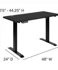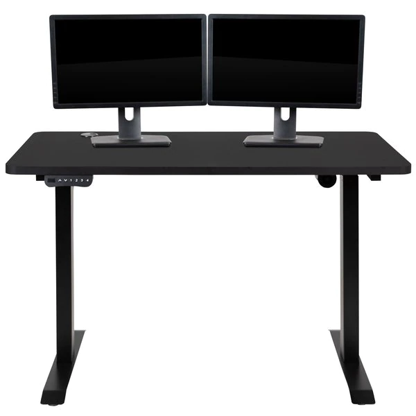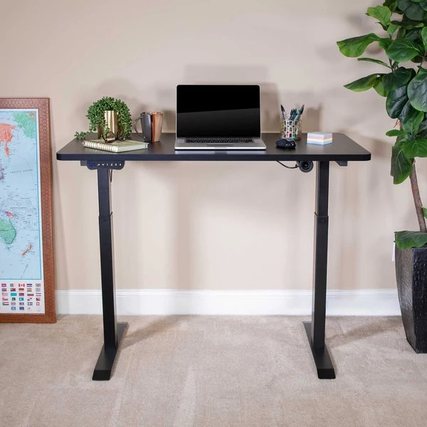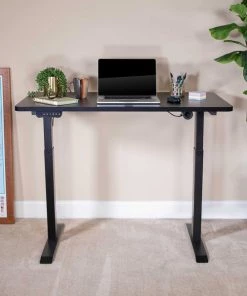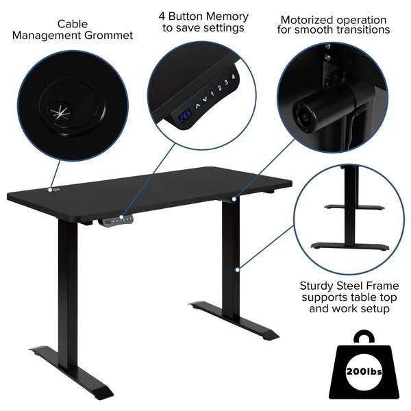 Improve productivity while also improving your mood with an adjustable computer standing desk. Whether in the office or working from home we spend a lot of time at our computer desk and a sit to stand desk offers a well-rounded design to get you through your work day. Adjustable desks support working at various seated heights with a regular desk chair or drafting chair. Transition from sitting to standing with the smooth motor mechanism. There's no work involved with this electric height adjustable desk, simply push the up and down arrow buttons. Four preset memory buttons allow you to save your favorite settings whether you share the desk or are the sole user. The large work surface includes a grommet hole to neatly feed all cords through. Achieve a healthier work habit with an standing and sitting desk to promote healthy blood flow while burning additional calories. Get the added comfort while standing with our sit or stand anti-fatigue mat with floor protection.