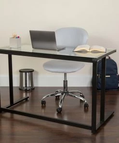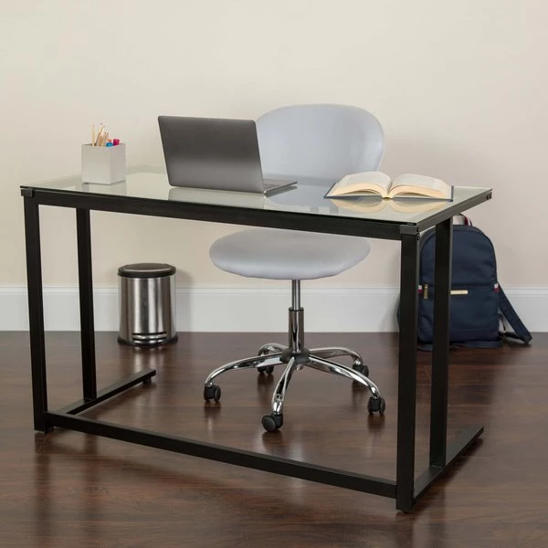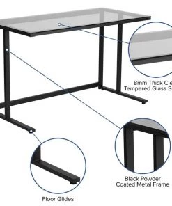 - Item: Glass Top Desk w/Black Pedestal Frame