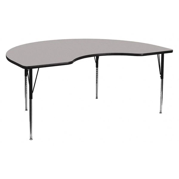 The Kidney Activity Table is a versatile option for school classrooms, corporate training centers and your home. Enhance collaborative learning by grouping tables together. It will accommodate children of all ages, from 1st grade to adult.It features a 48''W x 72''L thermal fused scratch, stain and warp resistant laminate top with a black edge band and 16 gauge tubular steel legs for increased stability. The top incorporates a protective underside backing sheet to prevent moisture absorption and warping. An attractive black powder coated finish protects the upper legs from scratches and height adjustable chrome lower legs give you the flexibility to raise or lower the table a full 9 inches in 1 inch increments. Self-leveling nylon floor glides keep the table from wobbling and protect your floor by sliding smoothly when you need to move it.This activity table provides a durable work surface for anything from computer labs to project meetings to laying out fabric in your sewing room. <ul><li>Collaborative Kidney Activity Table</li><li>Perfect shape for group learning</li><li>Scratch and Stain Resistant Surface</li><li>1.125'' Thick Thermal Fused Grey Laminate Top</li><li>Black Edge Band</li><li>16 Gauge Tubular Steel Legs</li><li>Black Powder Coated Upper Legs and Chrome Lower Legs</li><li>Legs Adjust in 1'' Increments</li><li>Self-Leveling Nylon Floor Glides</li><li>Recommended Grade Level: 1st Grade – Adult</li></ul>