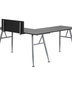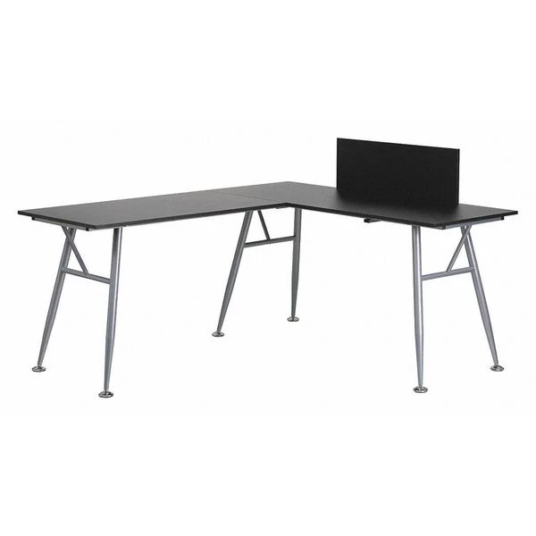 Office Desk, Overall Width 89 1/2 in, Overall Height 39 3/4 in, Overall Depth 60 in, Number of Pedestals 0, Pedestal Location None, Number of Drawers 0, Pedestal Style None, Keyboard Shelf No, Color Base Black, Color Top Black, Base Material Metal, Top Material Laminate, No Handle, Assembly Required, Standards ANSI/BIFMA