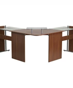 Flash Furniture Multi Functional Desk, 61-3/4" D, 95" W, 34" H, Teakwood, Metal, Table Top: Glass