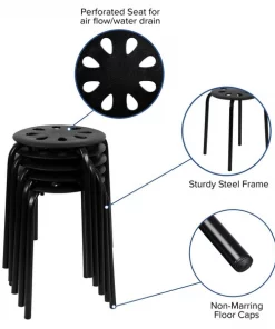 Fun for any environment these portable plastic stack stools allow you to have seating anywhere. Sized perfectly for flexible classroom and office spaces. For remote learning spaces, these adorable stools accommodate a separate space for reading and creative activities. With a stack capacity of 5 stools, these chairs conveniently store away until your next event or gathering. Whether you're celebrating in the home, providing seating for students in the classroom or are on the road in an RV these lightweight multipurpose stools are an excellent choice anywhere.