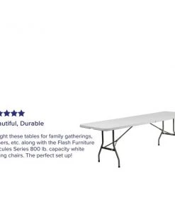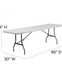 Flash Furniture Rectangle Folding Table, 30" W, 96" L, 29" H, Plastic Top, White