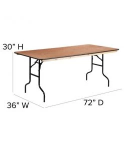 Flash Furniture Rectangle Folding Table, 36" W, 72" L, 30" H, Wood Top, Wood Grain