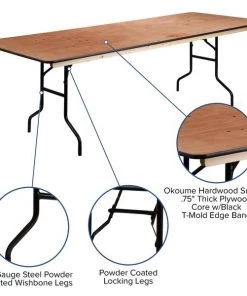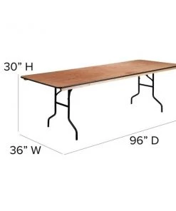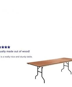 Flash Furniture Rectangle Folding Table, 36" W, 96" L, 30" H, Wood Top, Wood Grain