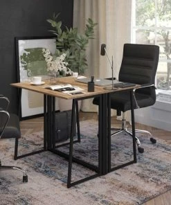 Get into a normal work from home routine by setting up a dedicated office space to perform your work duties instead of the dining room table. When you need something simple and functional this folding computer desk is at your service. Setup your desktop or use as a laptop table. If you're short on space this foldable desk folds to 2.75" depth to store behind your sofa. This attractive industrial style desk is highlighted by light and dark colored variations. Create a school environment at home for your remote learning student. This student desk can be used in the home or dorm room. The industrial style desk can be your all-in-one creative space for work, play and meals.