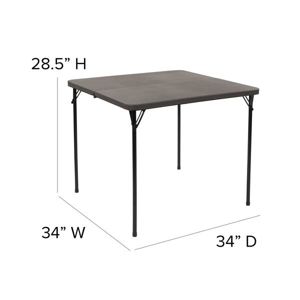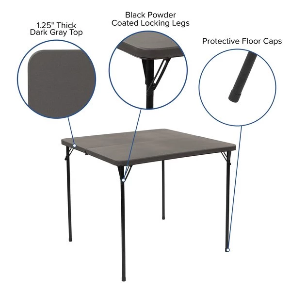 Flash Furniture Square Folding Table, 34" W, 34" L, 28.5" H, Plastic Top, Grey