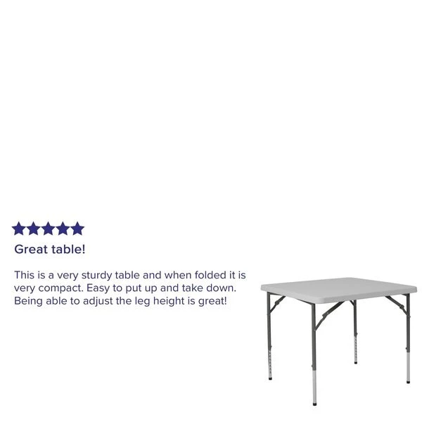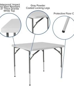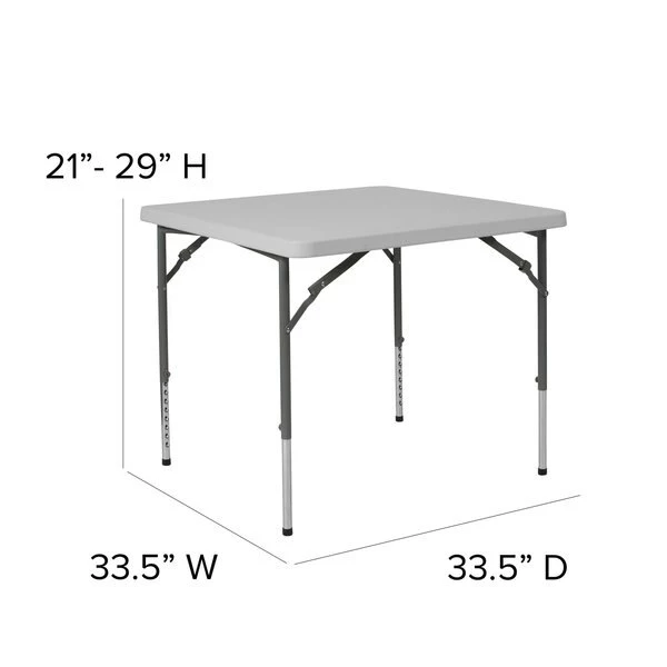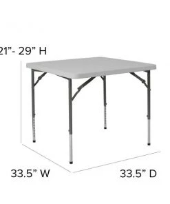 - Item: Folding Table,Plastc,34” Sqr,Adj,Wht