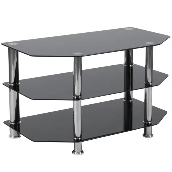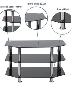 Flash Furniture Multi Functional Desk, 61-3/4" D, 95" W, 34" H, Teakwood, Metal, Table Top: Glass