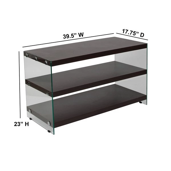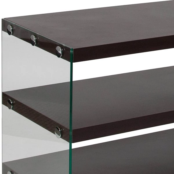 - Item: TV Stand,Shelves,Glass Frame,Dark Ash