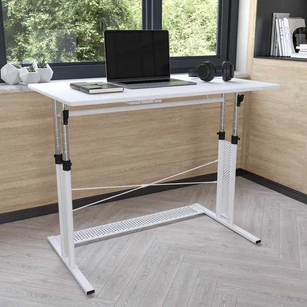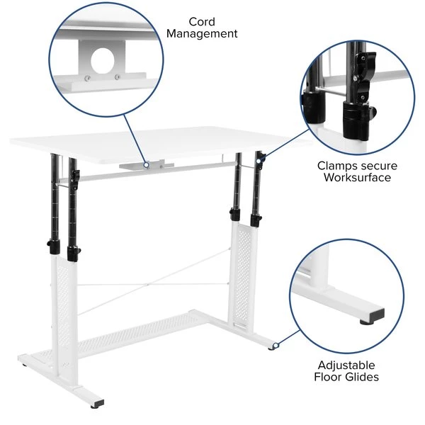 Wouldn't you like to have a desk that adjusts to suit the needs of your preferred height? With the majority of the market selling fixed desks you're now provided with the option to set a desk at your desired working height. Treat this table like your regular office desk, set to your preferred height and forget about it! You tend to get more accomplished when you're comfortable and this ergonomic office desk with its adjustable frame will get you in the groove. Unlock the clamps and push in lever to raise the frame, then snap the clamps back into place for a sturdy worksurface. This modern office desk is backed by a stabilizing pedestal base with adjustable floor glides. For those of us that like to sit up a little higher an adjustable office desk will be your best investment. Complete your height adjustable desk setting by coupling with your favorite standard height office chair or drafting chair.