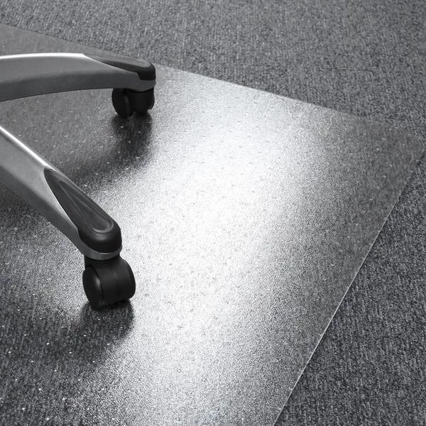 Cleartex Ultimat Chairmat is manufactured from Original Floortex Polycarbonate for the ultimate in durability. It has twice the impact strength of PVC to provide a highly rigid, ergonomic, easy-glide surface. High clarity allows the beauty of flooring to shine through. Rectangular chairmat protects flooring from wear and damage caused by chair casters. Gripper back is ideal for use on plush-pile carpets over 1/2" thick. Polycarbonate will instantly go flat so no need to wait to flatten before use. Manufactured using up to 30 percent renewable energy, this 100 percent recyclable chairmat is free of phthalates, cadmium, tin and lead content. It is also Green Guard Indoor Air Quality Certified.