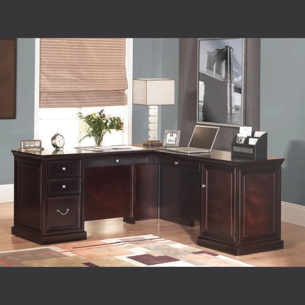 Inspired by the kathy ireland HomeTM Architectural Style GuideTM, Fulton is a soft modern collection that blends traditional design elements like crown molding and picture frame detailing with contemporary influences like clean lines, satin nickel hardware and a rich espresso finish. Bring the best of both design worlds in to your home with the Fulton home office collection, a true design solution. The executive desk features a drop front keyboard drawer and an adjustable shelf space for a CPU, keeping bulky equipment and cables out of the way avoiding clutter.