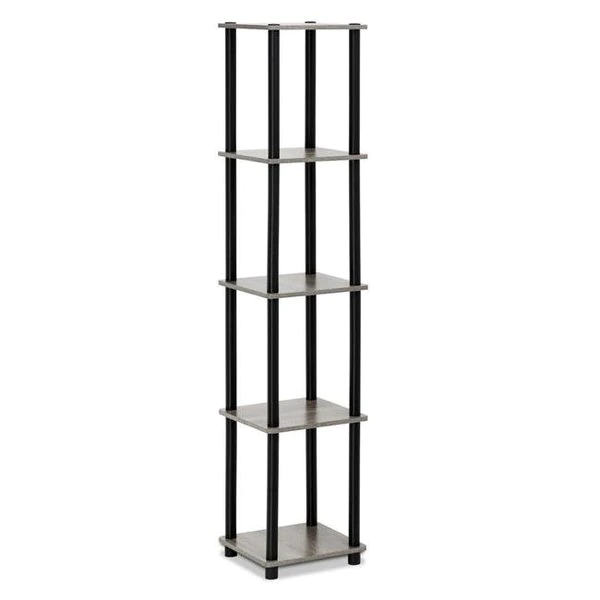Furinno Turn-N-Tube Home Living Mini Storage and Organization Series 5-Tiers No Tools Tube Storage Shelving Unit . Unique Structure is Open display rack. shelves provide easy storage and display for decorative and home living accessories. Suitable for rooms needing vertical storage area. Designed to meet the durable and efficient furniture. It is proven to be the most popular RTA furniture due to its functionality. price. and the no hassle assembly. Smart Design is Easy Assembly and No tools required. A smart design that uses durable recycled PVC tubes and engineered medium density composite wood that withstand heavy weight. Just repeat the twist. turn and stack mechanism. and the whole unit can be assembled within 10 minutes. Experience the fun of D-I-Y even with your kids . There is no foul smell. durable and the material is the most stable amongst the medium density composite woods. The PVC tube is made from recycled plastic and is tested for its durability. A simple attitude towards lifestyle is reflected directly on the design of Furinno Furniture. creating a trend of simply nature. FeaturesTurn-N-Tube 5-Tier Corner Square Rack Display ShelfCare Instruction:Wipe clean with clean damped clothAvoid using harsh chemicalsSpecificationsColor: French Oak Grey & BlackWeight: 11.57 lbs