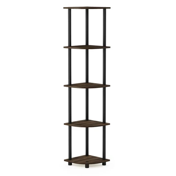 Don't stress over storage Effortlessly stow and display your belongings in charming style with this lovely bookcase unit. Simple yet sophisticated. this sleek design can blend in with a variety of ensembles. Try setting this design in a corner of your living room. then fill the shelves with a stack of vintage novels. an antiqued clock and a few framed family photos for a classic display. Need space to stow your media accessories Add corner style baskets to the shelves to tuck away your belonging in style. FeaturesThe three-beam frame gives this design a sleek look. while the wood-style shelves add a touch of traditional flairThis design features five open shelves for all your storage needs. and a corner design to save spaceSpecificationsColor: Columbia Walnut & BlackSize: 5 TierMaterial: Carb compliant composite wood and PVC TubesDimension: 57.7 x 11.6 x 11.6 in.Weight: 9.85 lbs
