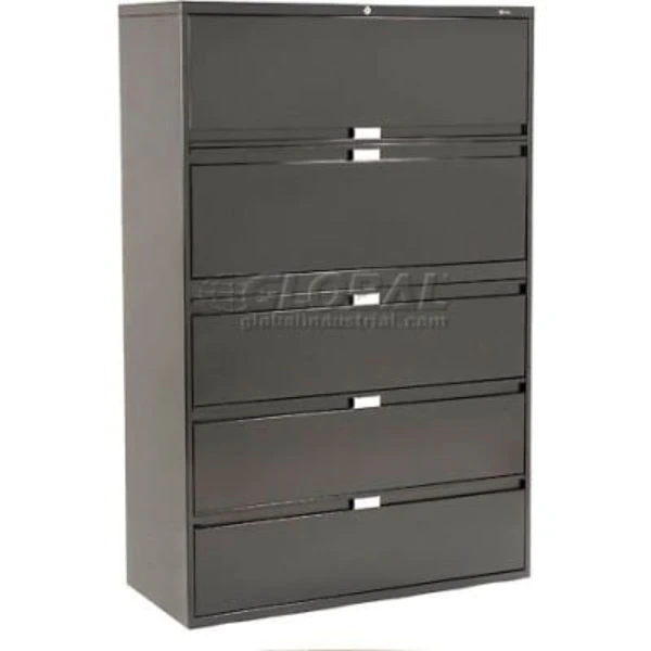 Global 9300 series 36"w 5 drawer binder lateral file – black these premium lateral files measure a generous 18"d and stores large items such as 3-ring binders and 11" x 15" computer print-out binders in the extra large 13-5/16"h top drawers. Top 2 drawers are 13-5/16?h; only the top drawer is fully retractable. The remaining 3 drawers measure 11-3/16"h, making them perfect for legal and letter file folders. Quality features include factory installed folder rails, smooth glide steel ball bearing suspensions and full width drawer pulls. Folder rails in each file drawer allow side-to-side filing; purchase optional front to back bars for convenient front-to-back filing. Central system locks all drawers. Anti-tip feature allows only 1 drawer open at a time. Meets ansi/bifma and ista standards.
