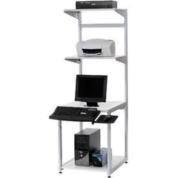 24" COMPUTER LAN WORKSTATION, GRAY, UNASSEMBLED, 24"W X 30"D X 74"H THESE 16-GAUGE STEEL-REINFORCED STATIONS FEATURES A 30"D WORK SURFACE TO HANDLE EVEN THE LARGEST MONITORS, LEAVING PLENTY OF WORKSPACE. PLASTIC LAMINATE WORK SURFACE IS 1 1/8" THICK AND IDEALLY POSITIONED AT 29"H. TWO TOP SHELVES (18 1/4"D) ARE HEIGHT ADJUSTABLE ON 2" INCREMENTS. LOWER SHELF (27"D). SHELVES ARE 3/4" THICK PLASTIC LAMINATE. EACH UNIT OFFERS TRIPLE-LEG SUPPORT WITH FOUR LATERAL BRACES FOR ADDED STABILITY. BRACES OFFER BUILT-IN CABLE MANAGEMENT. GRAY POWDER COAT FINISH. ASSEMBLES EASILY.
