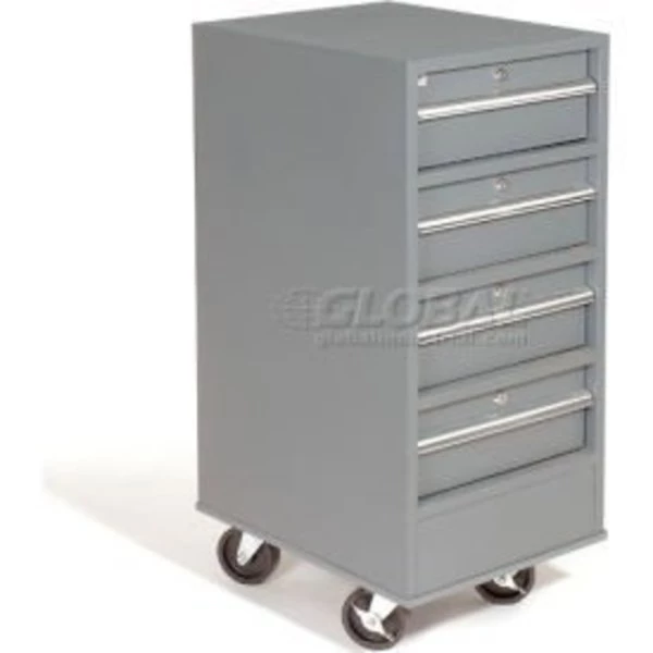 4 DRAWER MOBILE PEDESTAL – 432244 CHOOSE ANY OF OUR ALL WELDED STEEL MOBILE WORKBENCH PEDESTALS TO CREATE THE IDEAL WORKSTATION FOR YOUR APPLICATION. THIS FOUR DRAWER PEDESTAL FEATURES DRAWER DIMENSIONS OF 13"W X 17-3/4"W X 5-1/2"H. ALL DRAWERS FEATURE FULL-LENGTH ALUMINUM EXTRUSION HANDLE. DRAWER GLIDES SMOOTHLY ON NYLON ROLLERS AND INCLUDES AN INDIVIDUAL CYLINDER LOCK.DOLLY BASE FOR MOBILITY FEATURES 4" SWIVEL CASTERS (2-LOCKING).PEDESTAL DIMENSIONS ARE 15 3/4"W X 20"D X 36"H. DURABLE GRAY POWDER COAT FINISH.
