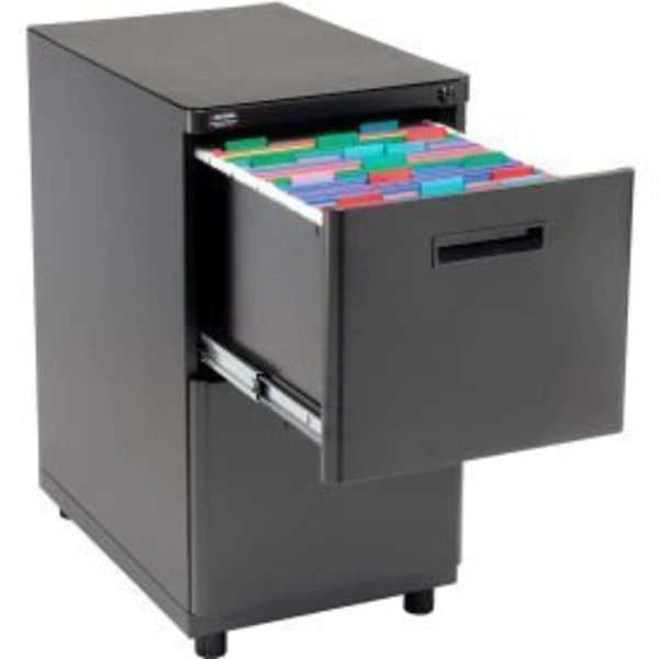 INTERION ; OFFICE PARTITION FURNITURE 2 DRAWER PEDESTAL INTERION ; BY Global OFFICE PARTITION FURNITURE HELPS OPTIMIZE YOUR PARTITIONED WORK SPACE, WHILE ADDING FUNCTIONALITY AND STORAGE. THESE MODULAR COMPONENTS ARE MADE WITH CHARCOAL FINISHED STEEL. FILE CABINET INCLUDES A FINISHED STEEL TOP THAT ALLOWS UNIT TO BE USED AS A FREESTANDING CABINET. FEATURES 2 FILE DRAWERS THAT ACCEPT LETTER OR LEGAL SIZE FILING. PEDESTAL INCLUDES GANGED CYLINDER LOCK AND RECESSED HANDLES. INCLUDES ADJUSTABLE LEVELING GLIDES. EASY ASSEMBLY. 1 YEAR LIMITED WARRANTY.