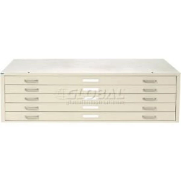 INTERION ;, 41 W Û PUTTY, BLUEPRINT FLAT FILE CABINET Û 5 DRAWER THIS 5-DRAWER BLUEPRINT FLAT FILE CABINET KEEPS VALUABLE DOCUMENTS STACKED PERFECTLY FLAT AND CURL-FREE WITH HINGED PAPER DEPRESSORS AND REAR DRAWER HOOD. DRAWER FRONTS HAVE DOUBLE PANEL CONSTRUCTION WITH CHROME-PLATED DRAWER PULLS AND CONVENIENT LABEL HOLDERS. BLUEPRINT FILE CABINET HAS STURDY STEEL CONSTRUCTION WITH INTERNAL CHANNEL REINFORCEMENTS PERMITS STACKING. DRAWERS SLIDE SMOOTHLY ON EASY-GLIDE BALL BEARING ROLLERS AND PRECISION DRAWER RUNNERS. CHIP AND SCRATCH RESISTANT FURNITURE GRADE FINISH. DURABLE PUTTY POWDER COAT FINISH. OPTIONAL CLOSED BASE RAISES UNIT 4" OFF THE FLOOR.