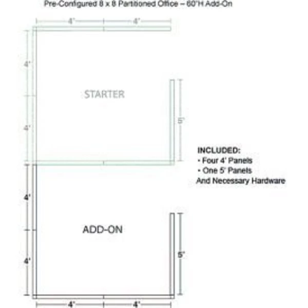 INTERION ; PRE-CONFIGURED CUBICLE PARTITIONED OFFICE 8W X 8D X 5H ADD-ON GRAY FABRIC GRAY PARTITION PANELS HELP REDUCE NOISE, CREATE PRIVACY USE SPACE EFFICIENTLY. USE INTERION ; BY Global PRE-CONFIGURED PARTITIONED OFFICES TO CREATE PRIVATE OFFICE SPACES, CUBICLES, RECEPTION STATIONS AND CALL CENTERS FOR ANY OFFICE ENVIRONMENT. PANELS ARE FLAME RETARDANT TO MEET THE CALIFORNIA 117 FLAMMABILITY STANDARD. 1-5/8 THICK FABRIC UPHOLSTERED PANEL FEATURES AN INTERIOR ENGINEERED WOOD (MDF) FRAME AND HONEYCOMB CORE COVERED WITH HEAVY TACKABLE LINER FOR STRUCTURAL STRENGTH AND SUPPORT. PANEL TRIM IS FINISHED WITH SELF-EXTINGUISHING EXTRUDED POLYMER THAT OFFERS OPTIMUM SAFETY AND RIGIDITY. PARTITIONED OFFICE INCLUDES FOUR 4' PANELS, ONE 5' PANEL AND NECESSARY HARDWARE. PARTITION PANELS INCLUDE ADJUSTABLE LEVELING FEET THAT ARE IDEAL FOR UNEVEN SURFACES. EASY ASSEMBLY. 1 YEAR LIMITED WARRANTY.