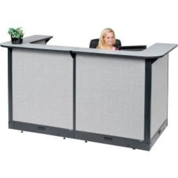U-SHAPED ELECTRIC RECEPTION STATION, 88"W X 44"D X 46"H, GRAY COUNTER, GRAY PANEL INTERION ; BY Global RECEPTION STATIONS WITH RACEWAYS ALLOW CONVENIENT STORAGE OF WIRES CABLES WHILE MAINTAINING AN ATTRACTIVE, PROFESSIONAL APPEARANCE. RECEPTION STATIONS ARE IDEAL FOR RECEPTION ROOMS AND SECURITY AREAS. RECEPTION COUNTERS AND WORK SURFACES ARE MADE USING 1" THICK SCRATCH RESISTANT LAMINATE. 12"D RECEPTION COUNTER PROVIDES A CONVENIENT WRITING SURFACE FOR GUEST AND VISITORS WHILE MAINTAINING RECEPTIONIST PRIVACY. DESKTOPS INCLUDE 2-3/16" DIAMETER CABLE MANAGEMENT GROMMET OPENING(S). DESK FRAMING IS MADE OF BLACK FINISHED STEEL FOR STRENGTH THAT LASTS. RECEPTION STATION PANELS CONSIST OF INTERION ; PARTITIONS THAT HELP REDUCE NOISE AND CREATE PRIVACY. RECEPTION PANELS ARE FLAME RETARDANT TO MEET THE CALIFORNIA 117 FLAMMABILITY STANDARD. 1-3/4" THICK FABRIC UPHOLSTERED PANELS FEATURE AN INTERIOR ENGINEERED WOOD (MDF) FRAME AND HONEYCOMB CORE COVERED WITH A HEAVY TACKABLE LINER FOR STRUCTURAL STRENGTH AND SUPPORT. PANEL TRIM IS FINISHED WITH SELF-EXTINGUISHING EXTRUDED POLYMER THAT OFFERS OPTIMUM SAFETY AND RIGIDITY. PANELS FEATURE RACEWAYS THAT PROVIDE CONVENIENT ACCESS FOR DATA CABLES ELECTRICAL WIRING. 4"H BLACK POWDER COATED STEEL RACEWAYS INCLUDE CABLE MANAGEMENT OPENINGS FOR PHONE DATA CABLES. REMOVABLE RACEWAY COVERS ALLOW EASY WIRING ACCESS. PANELS WITH ELECTRIC RACEWAYS FEATURE BUILT-IN DOUBLE-SIDED POWER BOXES, EACH WITH (4) CIRCUIT-1 RECEPTACLES AND MODULAR CABLES. EACH POWER BOX CAN ACCEPT UP TO 6 RECEPTACLES; 3 PER SIDE (ADDITIONAL RECEPTACLES SOLD SEPARATELY). USE INCLUDED BLANKS TO COVER UNUSED OPENINGS. INCLUDES ADJUSTABLE LEVELING FEET THAT ARE IDEAL FOR UNEVEN SURFACES. U-SHAPED RECEPTION STATION INCLUDES A 72"W DESK. DESKS ACCEPT INSTALLATION OF OPTIONAL STORAGE OPTIONS (SOLD SEPARATELY) INCLUDING PEDESTAL FILE, KEYBOARD DRAWER AND MOUSE TRAY . EASY ASSEMBLY. 1 YEAR WARRANTY.