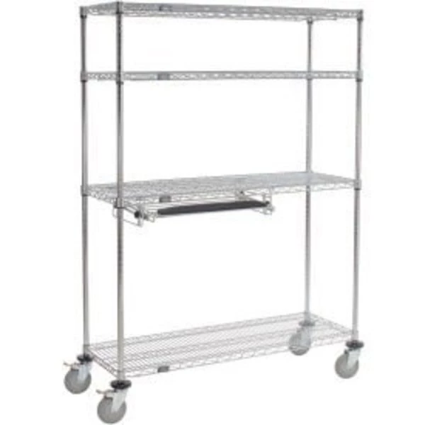 NEXEL ; 4-SHELF MOBILE WIRE COMPUTER LAN WORKSTATION WITH KEYBOARD TRAY, 48"W X 18"D X 69"H, CHROME NEXEL ; MOBILE LAN SHELVING WORKSTATION HOLDS YOUR LAN EQUIPMENT IN ONE ORGANIZED WORK CENTER. PRINTOUTS AND INFORMATION CAN BE ACCESSED WITHOUT RUNNING TO DIFFERENT LOCATIONS. WIRE CONSTRUCTION PROMOTES AIR CIRCULATION AND PREVENTS DUST BUILD-UP. 69"H LAN SHELVING COMES WITH FOUR SHELVES. LAN UNITS COME WITH ONE SLIDE-OUT KEYBOARD SHELF WITH WRIST REST, (FOR KEYBOARDS UP TO 23"W X 11"D). FOUR 5" POLYURETHANE SWIVEL CASTERS (TWO WITH BRAKES) FOR COMPLETE MOBILITY. ORDER ADDITIONAL SHELVES AND KEYBOARD DRAWERS (FOR LAN SHELVING ONLY) TO SUIT YOUR NEEDS. ATTRACTIVE CHROME-PLATED FINISH. EASY ASSEMBLY.