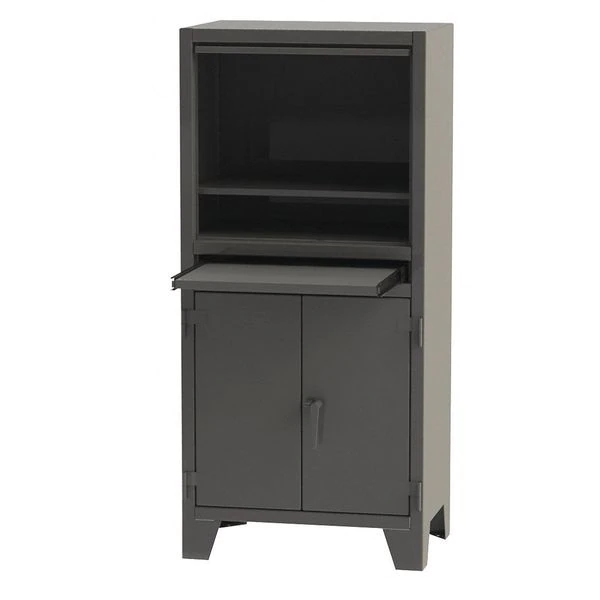 Desktop Computer Cabinet, Overall Width 36 in, Overall Depth 20 in, Overall Height 66 in, Compartment Width 36 in, Compartment Depth 20 in, Compartment Height 66 in, Powder Coated Finish, Color Charcoal Gray, Material Steel, Number of Shelves 3, Number of Drawers 0, Assembled