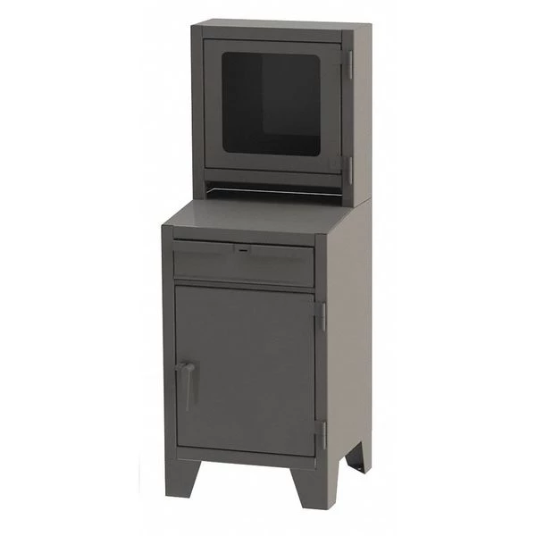 Mobile Computer Cabinet, Overall Width 26 in, Overall Depth 24 in, Overall Height 72 in, Compartment Width 26 in, Compartment Depth 24 in, Compartment Height 66 in, Powder Coated Finish, Color Charcoal Gray, Material Steel, Number of Shelves 1, Number of Drawers 1, Assembled