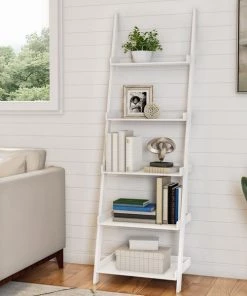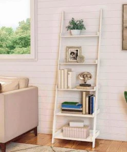 Monarch Specialties Bookcase, 69"H, Grey-Black Ladder With 2 Storage Drawer