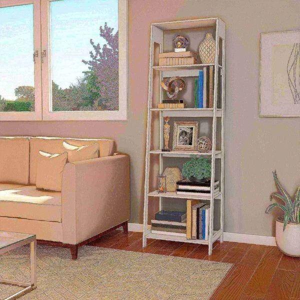 Monarch Specialties Bookcase, 60"H, Grey Cement With Tempered Glass