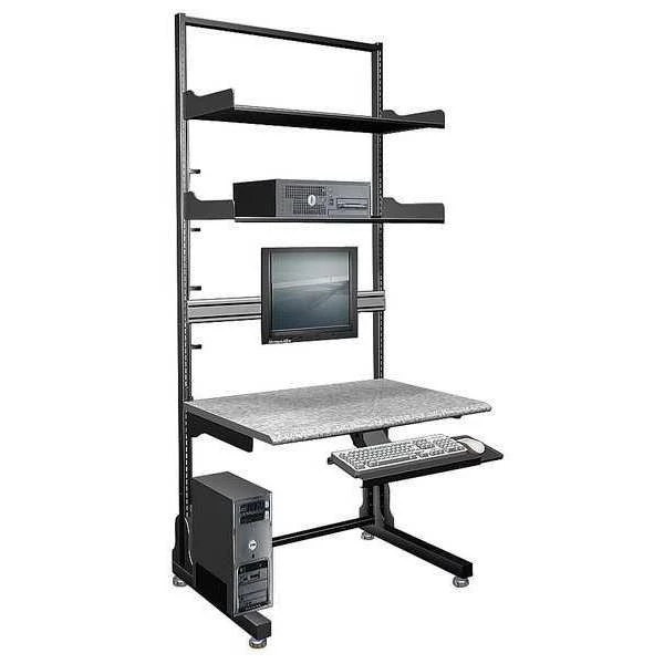 Computer Workstation, Material Metal/Laminated Pressboard, Number of Shelves 2, Color Black/Gray, Overall Height (In.) 84, Overall Width (In.) 36 in, Overall Depth (In.) 35 in, Shelf Depth (In.) 18 1/2 in, Keyboard Shelf Yes, Construction Metal, Finish Powder Coated, Load Capacity (Lb.) 1,500, Adjustable Yes, Shelf Thickness (In.) 1 in, Shelf Width (In.) 36 in, Assembly Required
