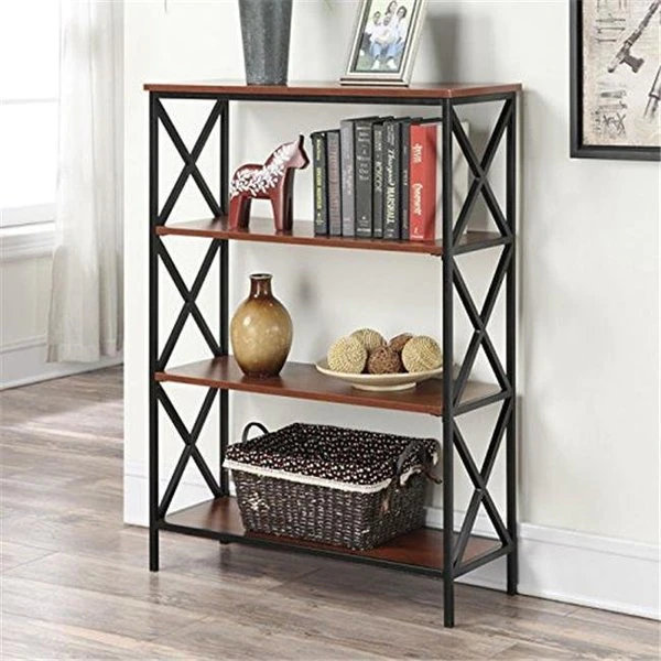 The Tucson 4 Tier Bookcase is a great addition to any home. In a rich glossy cherry finish and black cross frame it's sure to complement any home décor. Featuring 4 generous open shelves that allow you to display Knick knacks or easily store books for every day necessities with ease of access. This piece combines durability with functionality. Whether you use it in the living room or any other room it'll be sure to make a statement.Glossy Cherry FinishBlack Cross Frame4 shelves for storageWill Provide Years of EnjoymentDiemensions: 31.5L x 11.87W x 42H x weight 34 lbs