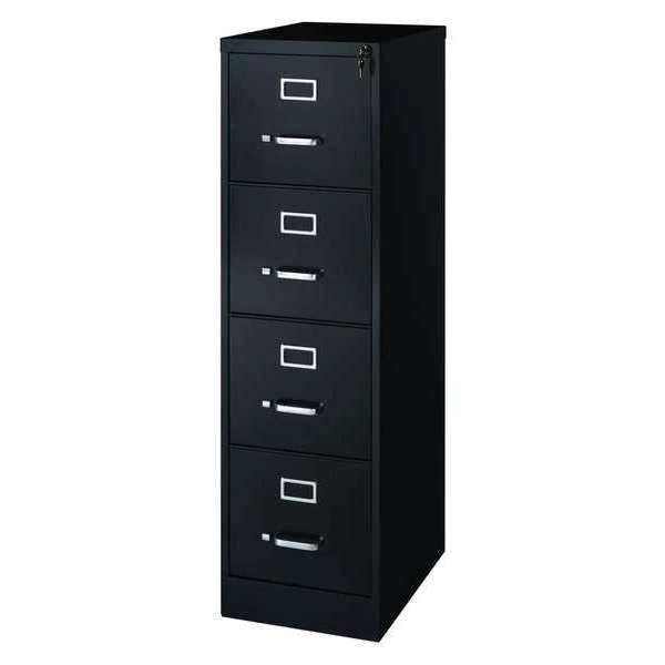 Vertical File Cabinet, File Cabinet Type Vertical, Series 22 in Deep Verticals, File Size Letter, Number of Drawers 4, Number of Doors 0, Overall Width 15 in, Overall Height 52 in, Overall Depth 22 in, Finish Powder Coated, Color Black, Material Steel, Label Holder Included Yes, Lock Included Yes, Assembled, Standards ANSI/BIFMA, Includes Hang Rails