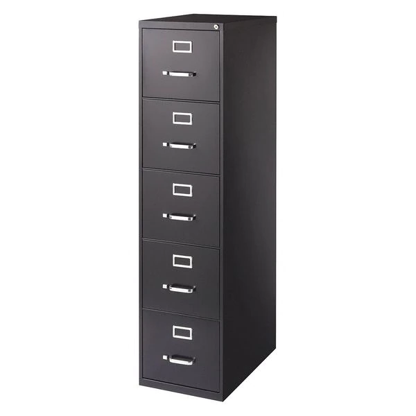 File Cabinet, File Cabinet Type Vertical, Series 3000, File Size Letter, Number of Drawers 5, Overall Width 15 in, Overall Height 61 3/8 in, Overall Depth 26 1/2 in, Finish Powder Coated, Color Black, Material Steel, Label Holder Included Yes, Lock Included Yes, Assembled, Standards Green Guard Certified, Includes Follower Blocks