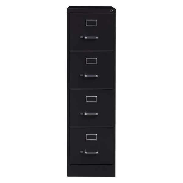 File Cabinet, File Cabinet Type Vertical, Series 28.5 in Deep Verticals, File Size Letter, Number of Drawers 4, Overall Width 15 in, Overall Height 52 in, Overall Depth 28 1/2 in, Finish Powder Coated, Color Black, Material Steel, Label Holder Included Yes, Lock Included Yes, Assembled, Standards Green Guard Certified, Includes Follower Blocks