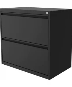 The 2 drawer 30" lateral file cabinet with full width J-pull handle is a durable, economical storage solution and is great for small spaces. The fully assembled steel construction with non-porous surface is easy to clean and disinfect. Smooth action ball-bearing suspension allows for a quiet drawer opening. Interlock allows only one drawer to open at a time for safety. Lock secures both drawers to keep your contents safe. Full high-side drawers provide storage for other office essentials. Designed for letter width hanging files. Three-quarter drawer opening prevents tipping.